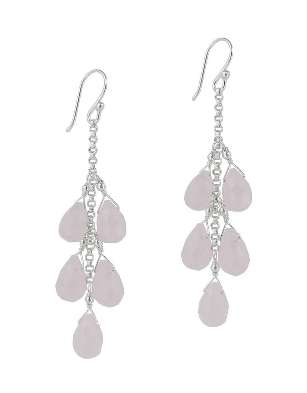 Stone drops cascading down like westeria flowers on this romantic earrings. Sterling silver and teardrop cut stones. Earrings are approximately 2 3/8 inch drop.