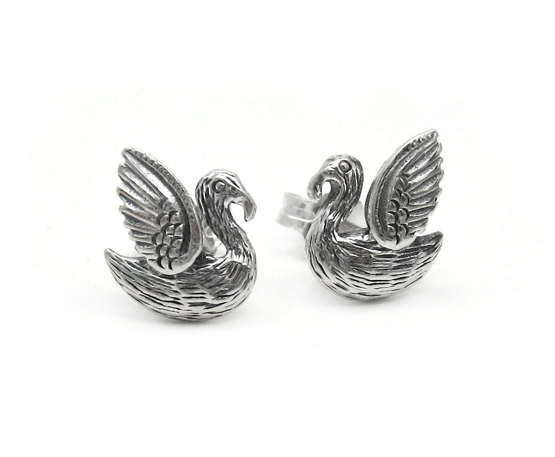 Click the button below to add the Sterling Silver Winged Bird Swan Stud Post Earrings to your wish list.