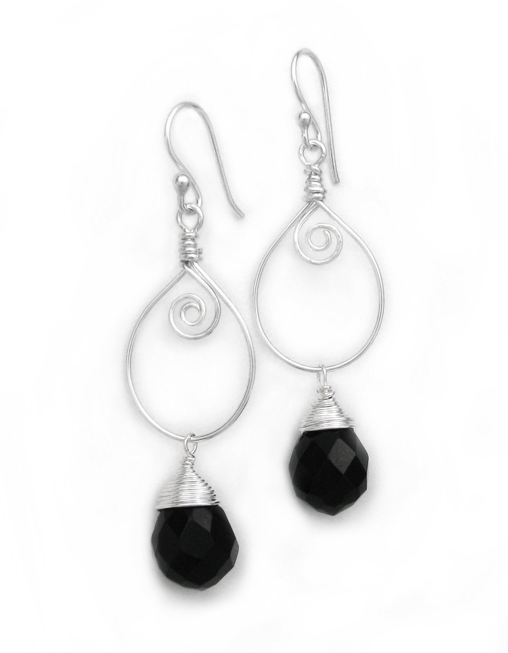 Click the button below to add the Sterling Silver Wire Work Teardrop Charm Stone Drop Earrings, Black to your wish list.