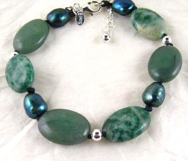 Click the button below to add the Stone and Pearl Knotted Sterling Silver Bracelet, Aventurine to your wish list.