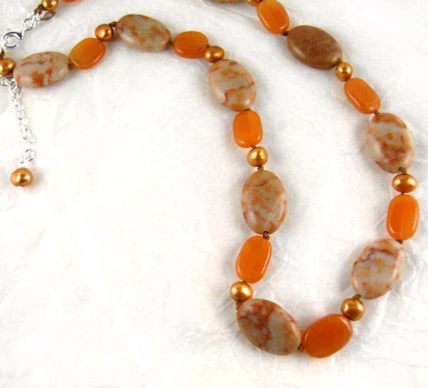 Click the button below to add the Stone and Pearl Knotted Sterling Silver Necklace, Carnelian to your wish list.