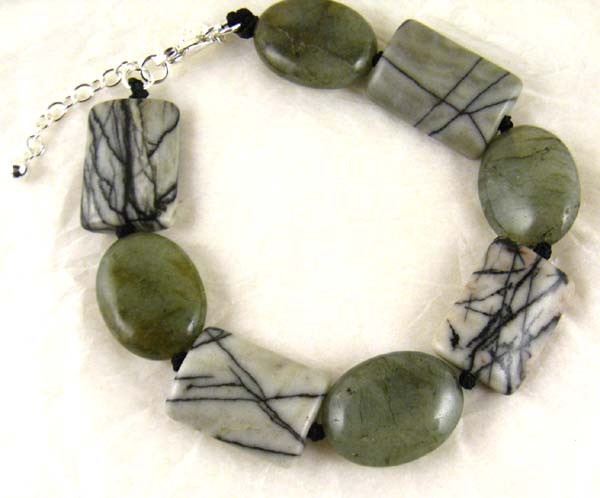 Click the button below to add the Stone Knotted Sterling Silver Bracelet, Webbed Jasper to your wish list.