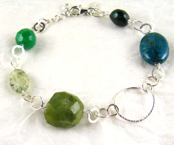 Click the button below to add the Stones and Link Sterling Silver Bracelet, Green Combo to your wish list.