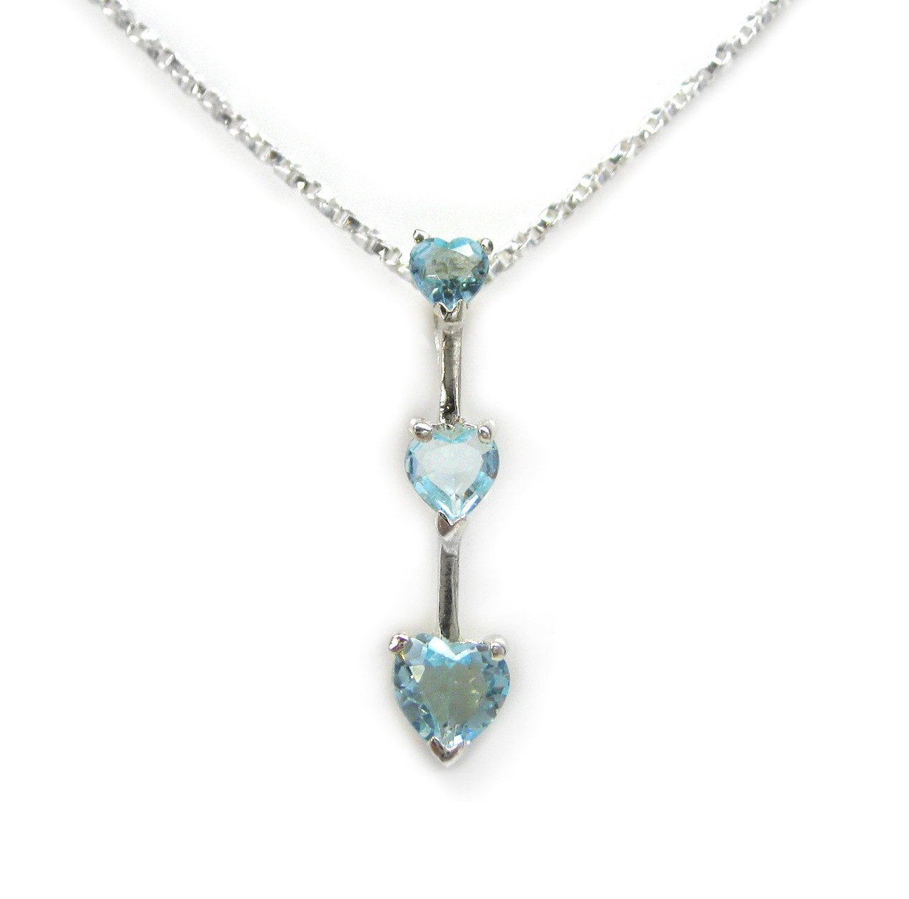 Three Hearts Birth Crystals Pendant 18" Necklace, March Aqua